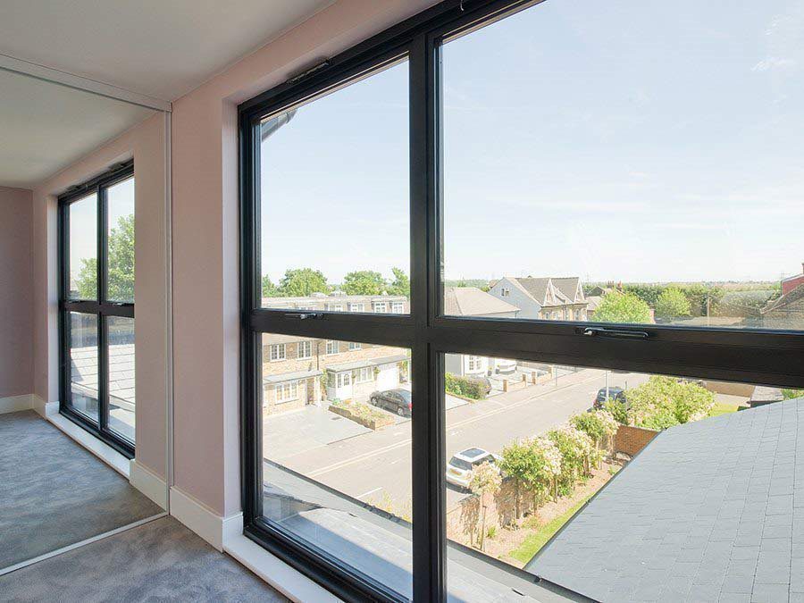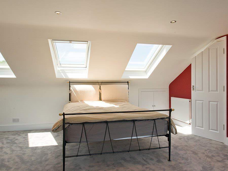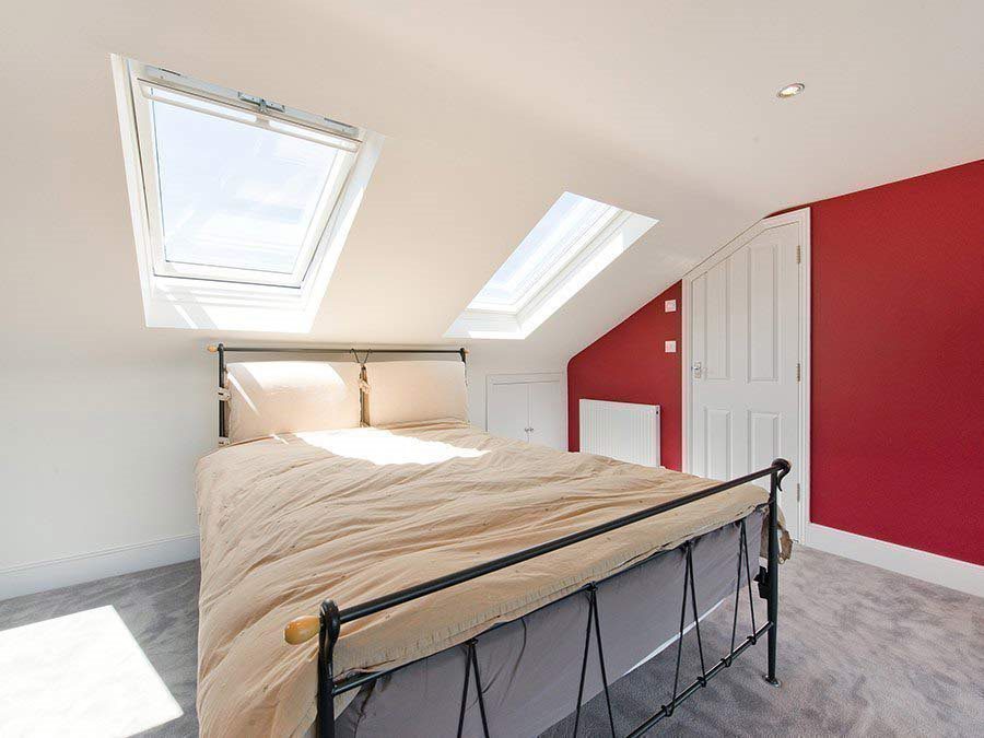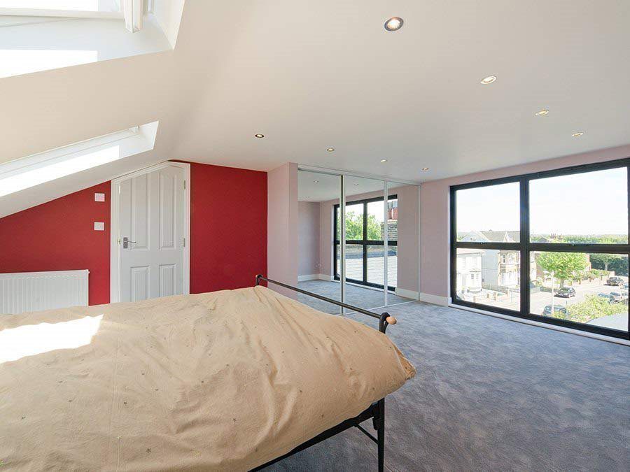 Moving to the interior of the new space, the roomy master bedroom is particularly striking and this is mainly thanks to the light and airy feel created by the floor-to-ceiling windows and Velux roof lights, and the bespoke mirrored sliding wardrobe doors that generate the illusion of a panoramic vista. Waking up to the view of the leafy avenue below in the sunshine will be a favourite pastime we are certain.